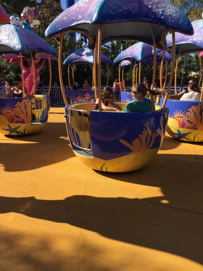 We were woken up the next morning by housekeeping knocking on our door. We were tired! We got up and after a few games on the iPad with Drew, we got ready for SeaWorld! When we first arrived, we were greeted by an amazing sculpture of a tidal wave ready to crash onto the entrance.