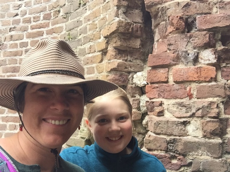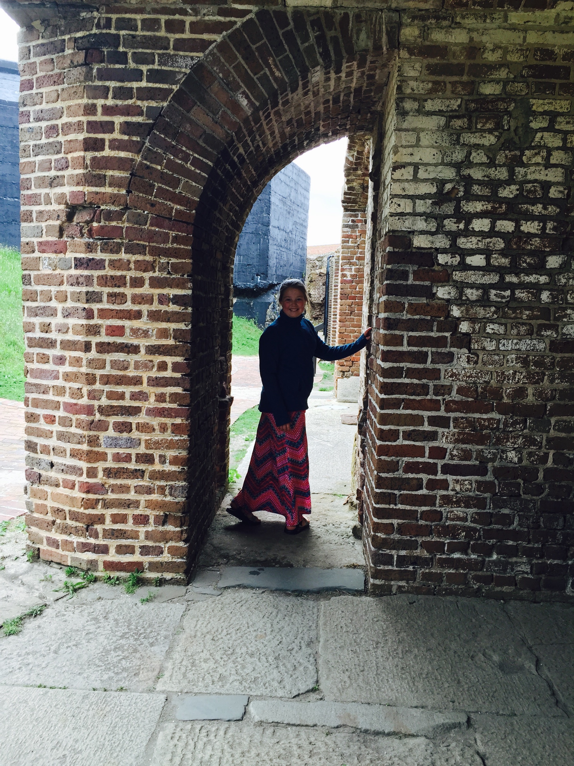 When we got to the fort, it was so windy that if it was weather like that in Estes, it would be indoor recess all day! We walked around outside looking at the model cannons, the old bricks, and the crushed oyster shells that held the walls together until we just about froze.